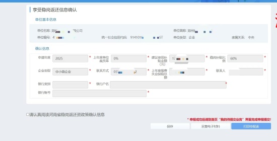 操作步骤:登录河南省社会保障网上服务平台——单位业务——享受稳岗返还信息确认——勾选“确认享受”